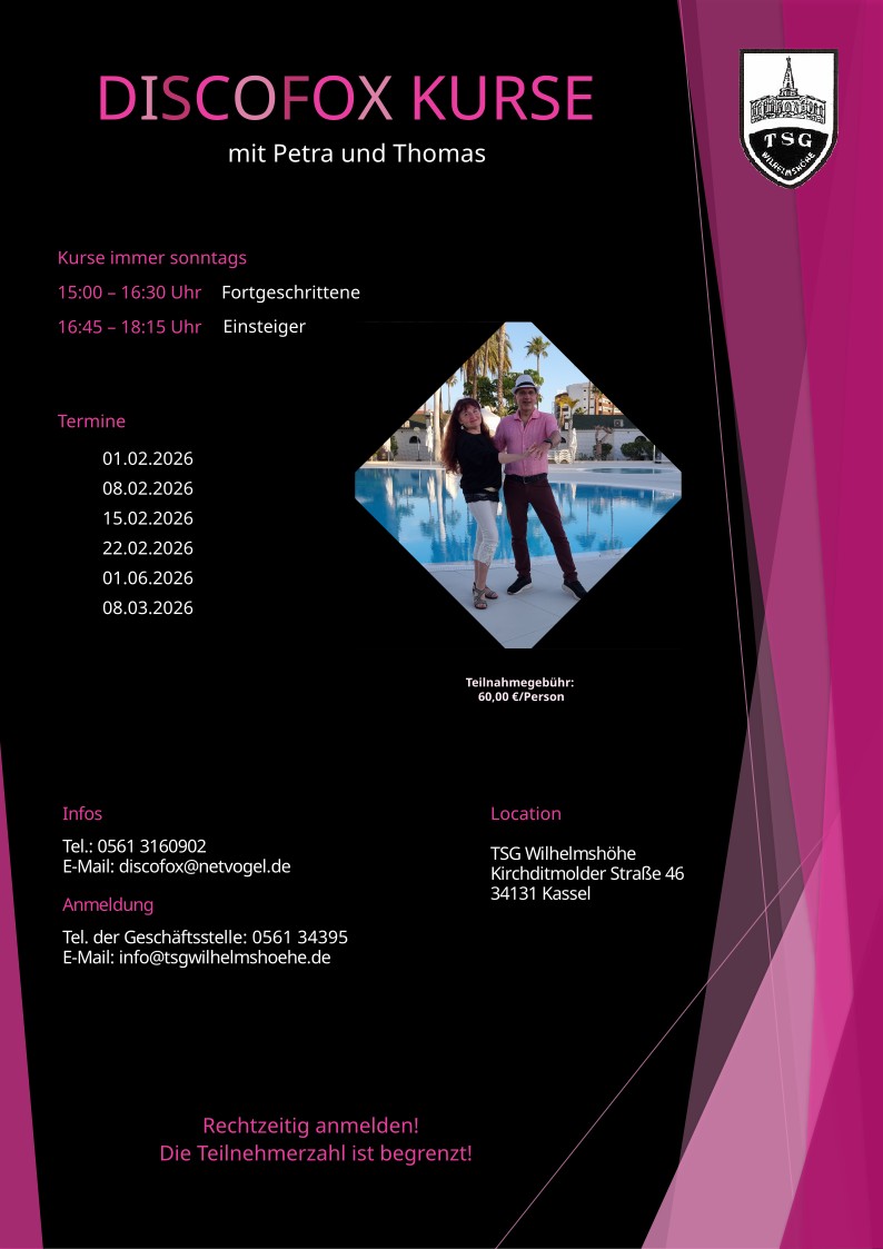 Neue DISCOFOX – Kurse mit 6 Terminen beginnen am Sonntag, den 01. Februar in unserem Kursraum im Vereinsheim.